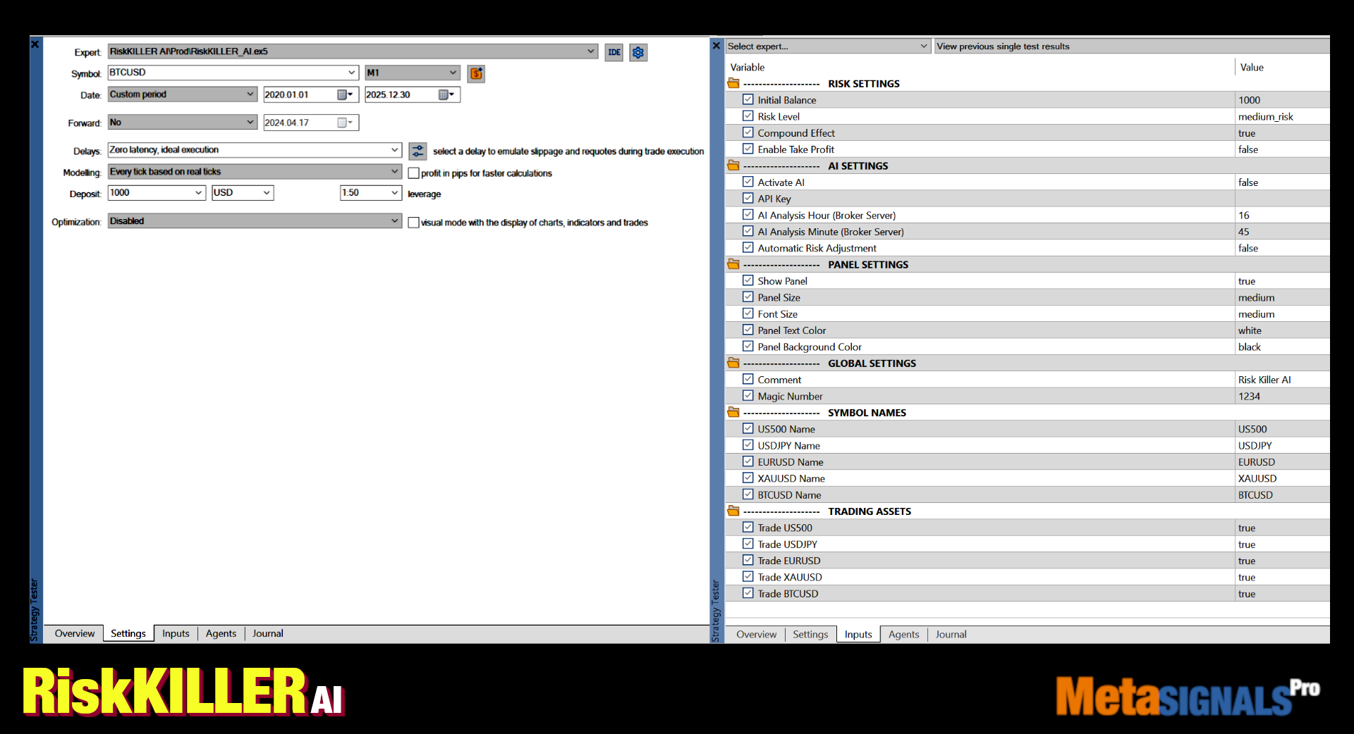 - Traded assets: BTCUSD, EURUSD, XAUUSD, USDJPY, US500